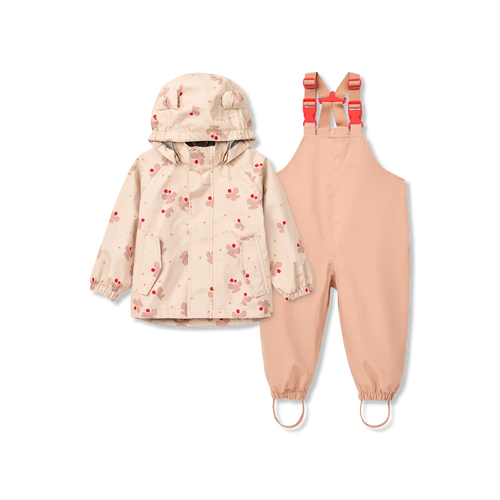 Type af regntøjKomplet przeciwdeszczowy: kurtka i spodnie na szelkach, Regulowany pasek pod stopami