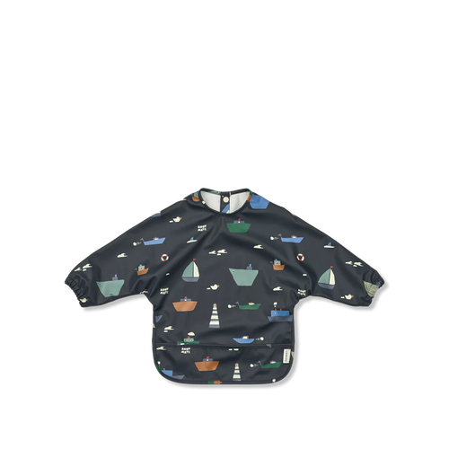 Zapinana na zatrzaski przy szyi, z gumkami przy rękawach i kieszonką na jedzenie, która spada.