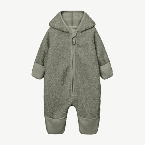 Kombinezon jest podszyty miękkim polarem i ma charakterystyczny, spiczasty kaptur z frędzlami. W rozmiarach od 1m/56 cm do 6m/68 cm, zarówno rękawy, jak i nogawki posiadają wbudowane, składane rękawiczki i skarpetki. Od rozmiaru 9m/74 cm wzwyż, rękawy i nogawki wykończone są wygodnymi ściągaczami.