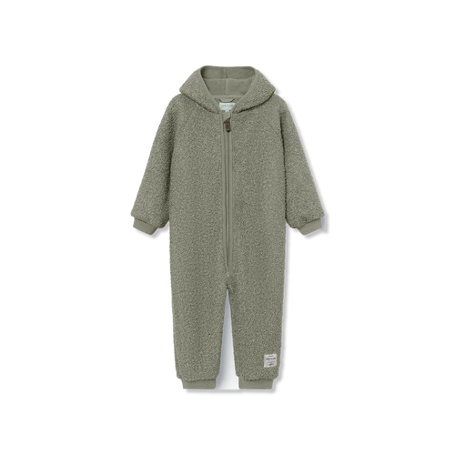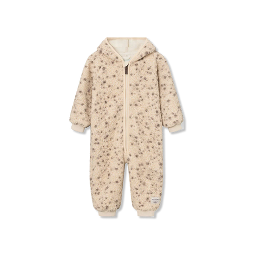Kombinezon jest podszyty miękkim polarem i ma charakterystyczny, spiczasty kaptur z frędzlami. W rozmiarach od 1m/56 cm do 6m/68 cm, zarówno rękawy, jak i nogawki posiadają wbudowane, składane rękawiczki i skarpetki. Od rozmiaru 9m/74 cm wzwyż, rękawy i nogawki wykończone są wygodnymi ściągaczami.