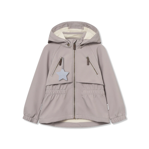 Praktyczna kurtka softshell od Mini A Ture, składająca się z trzech warstw: materiału wierzchniego, membrany i miękkiej polarowej podszewki. Kurtka ma detal w postaci peleryny, który odprowadza wodę, oraz gumkę w pasie. W kieszeni znajduje się kultowy element odblaskowy w kształcie gwiazdy, a z tyłu znajduje się odblaskowe logo.
