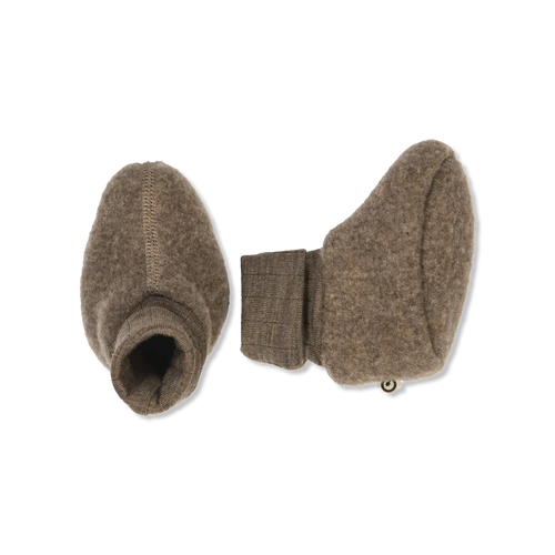 Utrzymuje ciepło małych stópek, gdy skarpetki nie wystarczają – idealne na zimne drzemki w wózku. Ściągaczowy brzeg można podwinąć, aby zapewnić dodatkowe ciepło i pomóc bucikom utrzymać się na miejscu. Wełna reguluje temperaturę i odprowadza wilgoć od ciała.